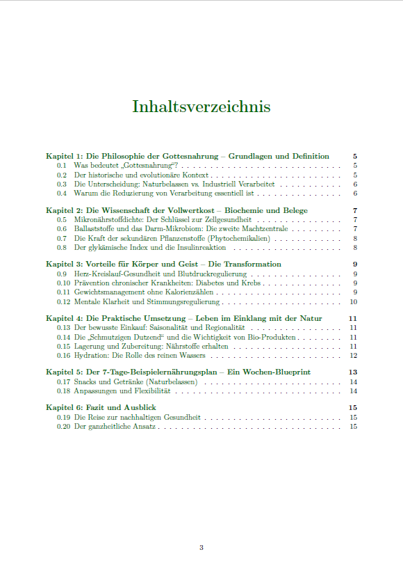 Die Umstellung auf naturbelassene Kost muss nicht kompliziert sein. Das E-Book liefert dir einen kompletten, detaillierten 7-Tage-Ernährungsplan, der sofort umsetzbar ist. Du erhältst: